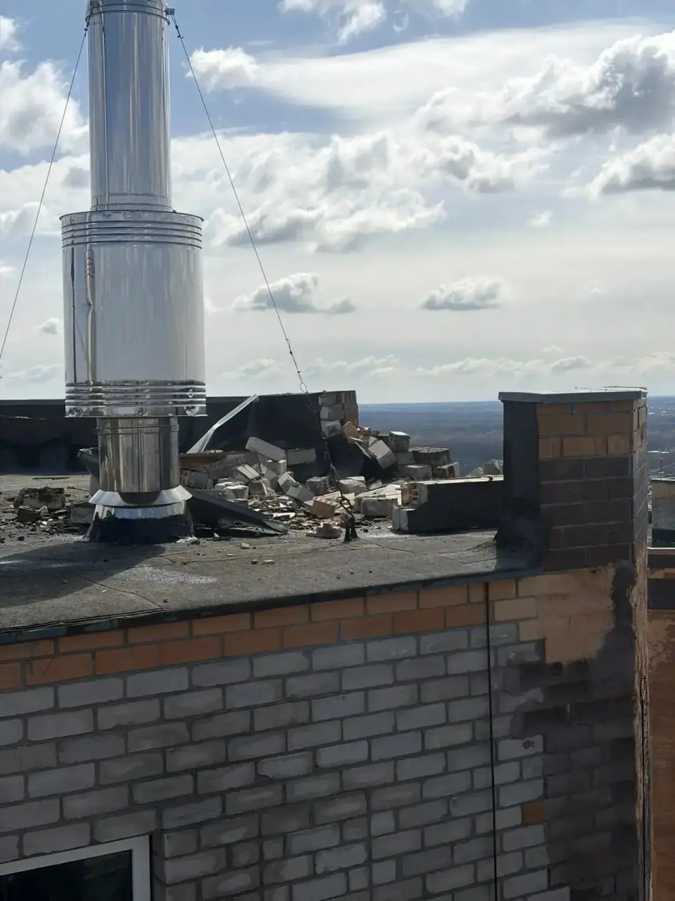 БПЛА не сдетонировал. Его обломки посекли крышу, где находится домовая котельная. Повреждения незначительные.