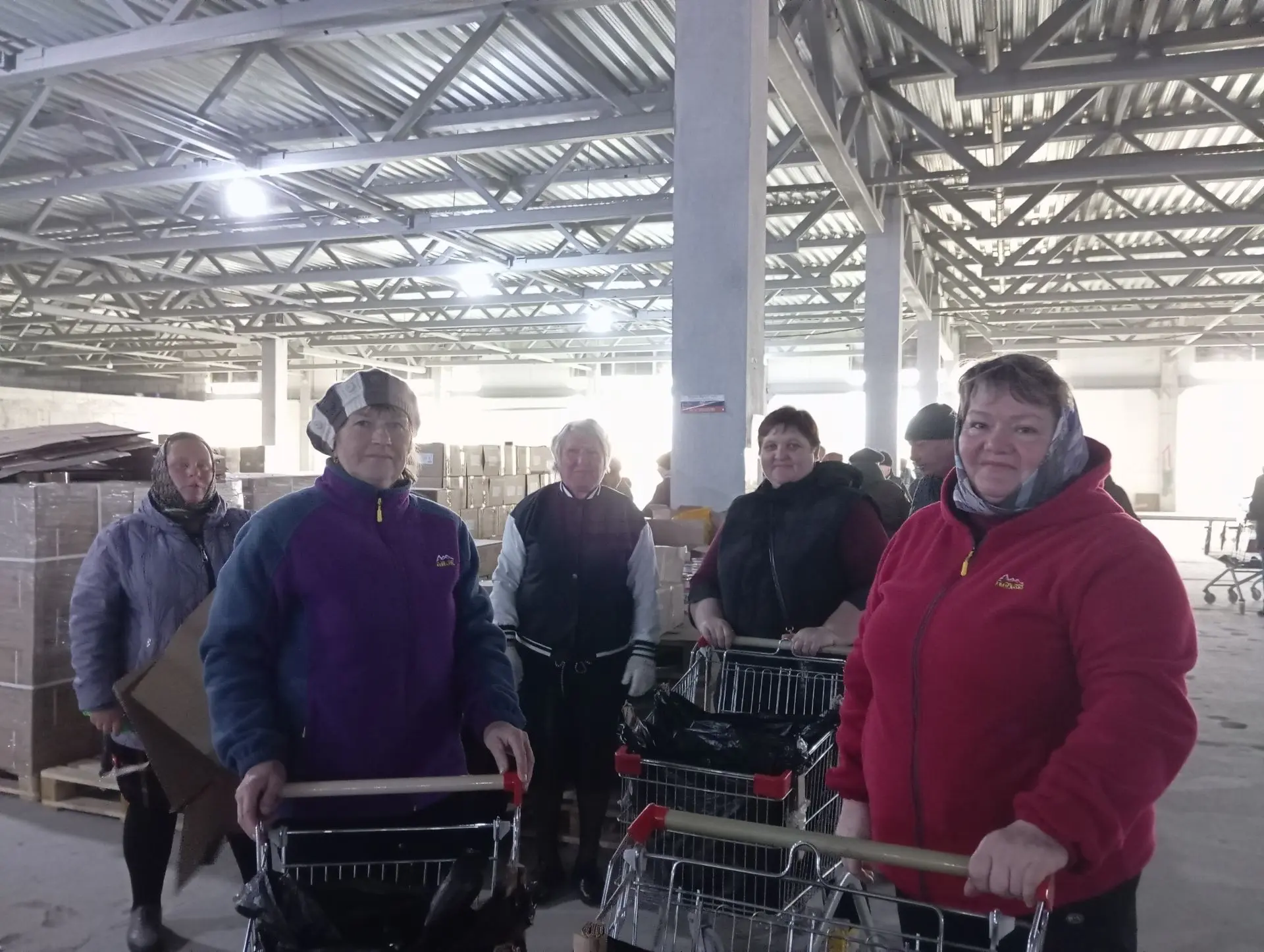 Вместе с волонтёрами они трудятся не покладая рук: сортируют, упаковывают и формируют продуктовые наборы для жителей приграничных территорий.
