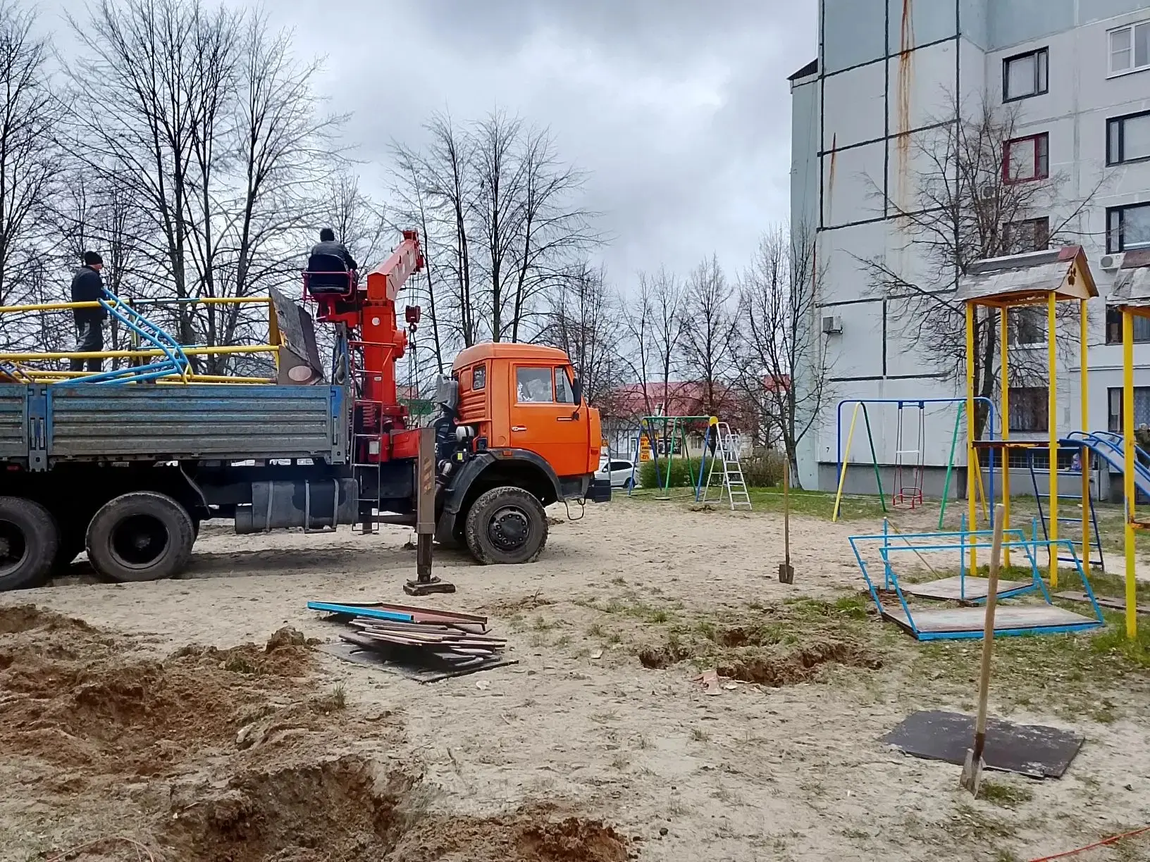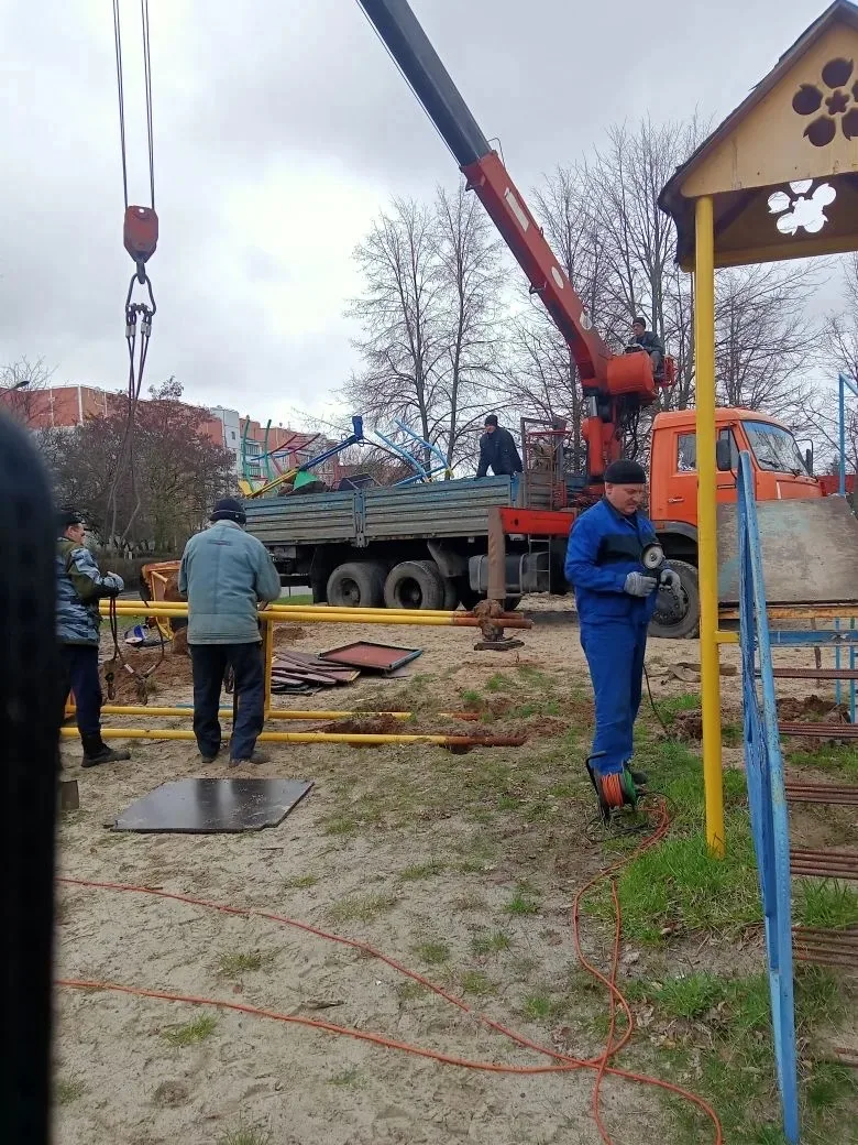 Силами местной администрации провели демонтаж старого, устаревшего игрового оборудования. В скором времени на его месте появится современное пространство для игр и спорта.