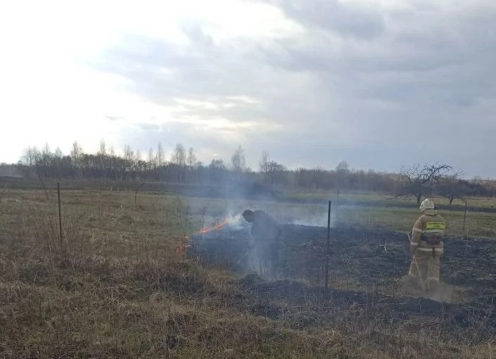 ликвидировали горение сухой травы в селе Б.Жирово совместно с главой Б.Жировского сельсовета и членами ДПД.