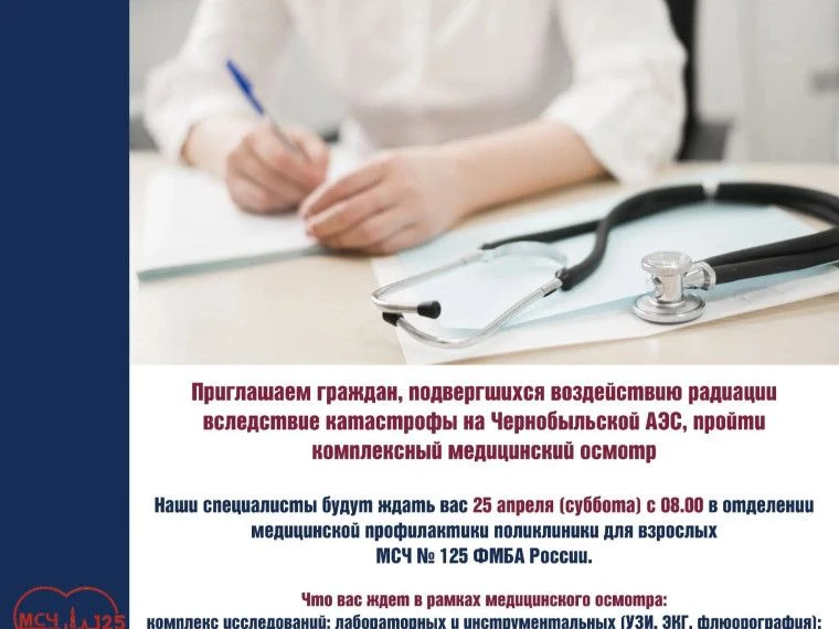 Приглашаем граждан, подвергшихся воздействию радиации вследствие катастрофы на Чернобыльской АЭС, пройти комплексный медицинский осмотр.