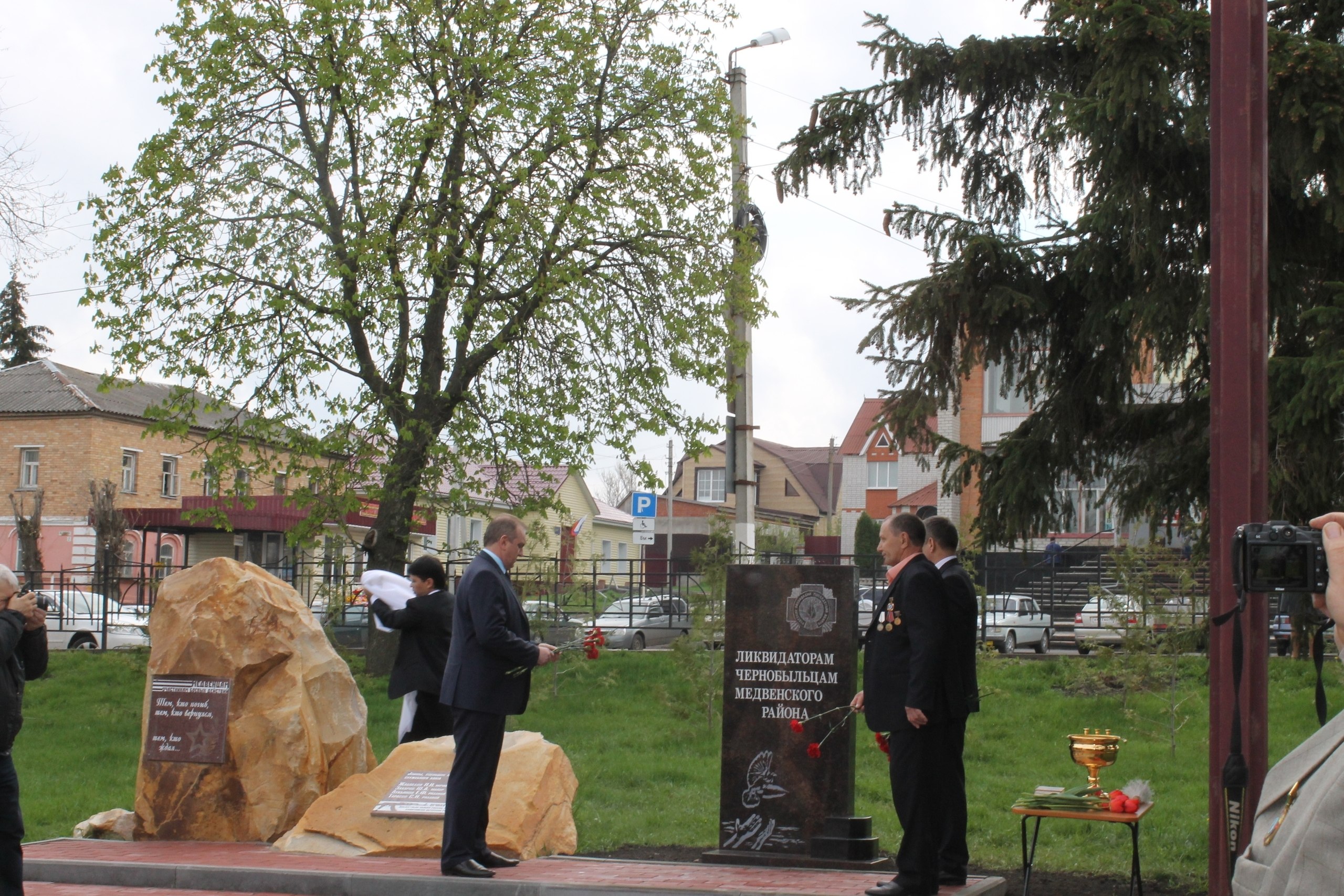 Интересна и фотография торжественной минуты открытия памятника ликвидаторам в Медвенском районе.