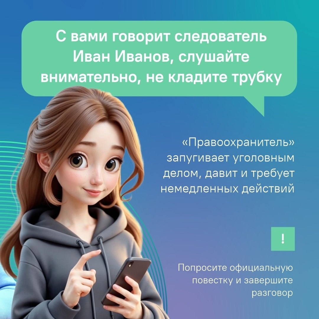 Чтобы вам было проще вычислить обман, напоминаем в карточках самые распространённые фразы аферистов.