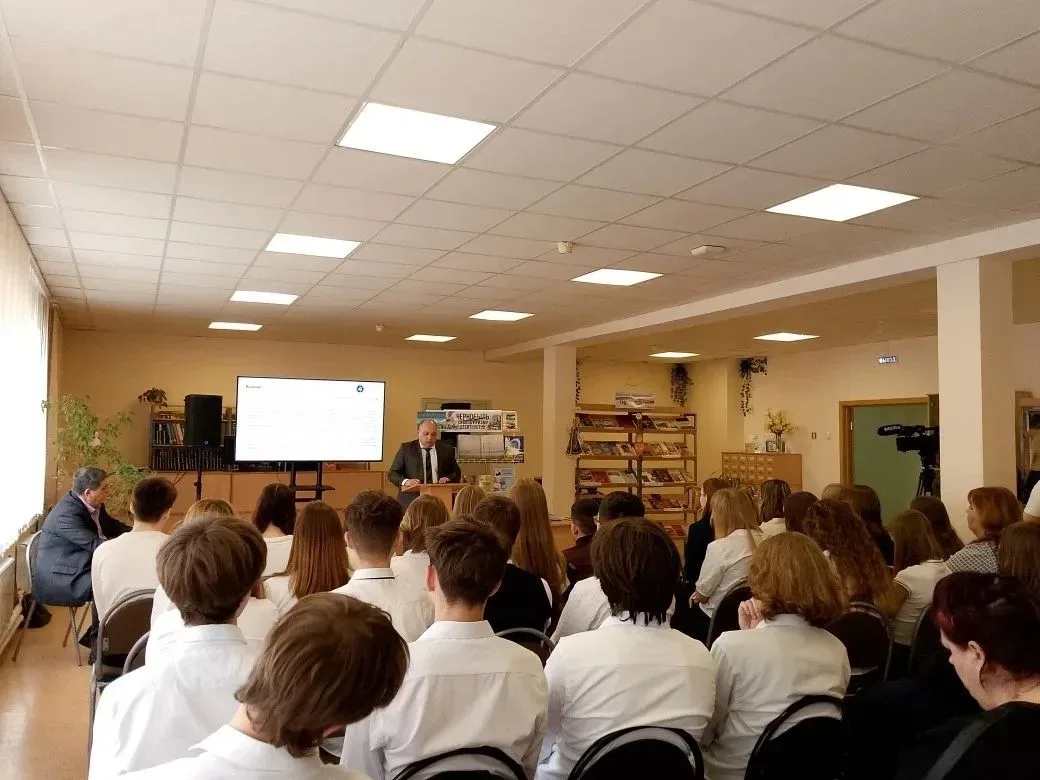 Заместитель главного инженера Курской АЭС Денис Перегуда рассказал о современном состоянии атомной энергетики в России и методах предотвращения чрезвычайных ситуаций на АЭС. Он также передал модельной библиотеке книги, посвящённые Курской атомной станции.