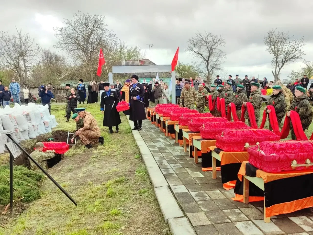 Останки 11 солдат Красной Армии, погибших в годы Великой Отечественной войны, перезахоронили в станице Галюгаевской. Церемония прошла с воинскими почестями, сообщил в "Максе" глава Курского округа Ставропольского края Павел Бабичев.