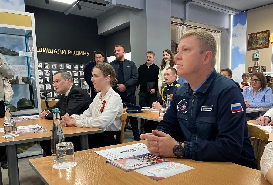 В музее «Юные защитники Родины» за парты сели губернатор Александр Хинштейн и летчик-космонавт, Герой России Александр Горбунов, уроженец Железногорска Курской области.