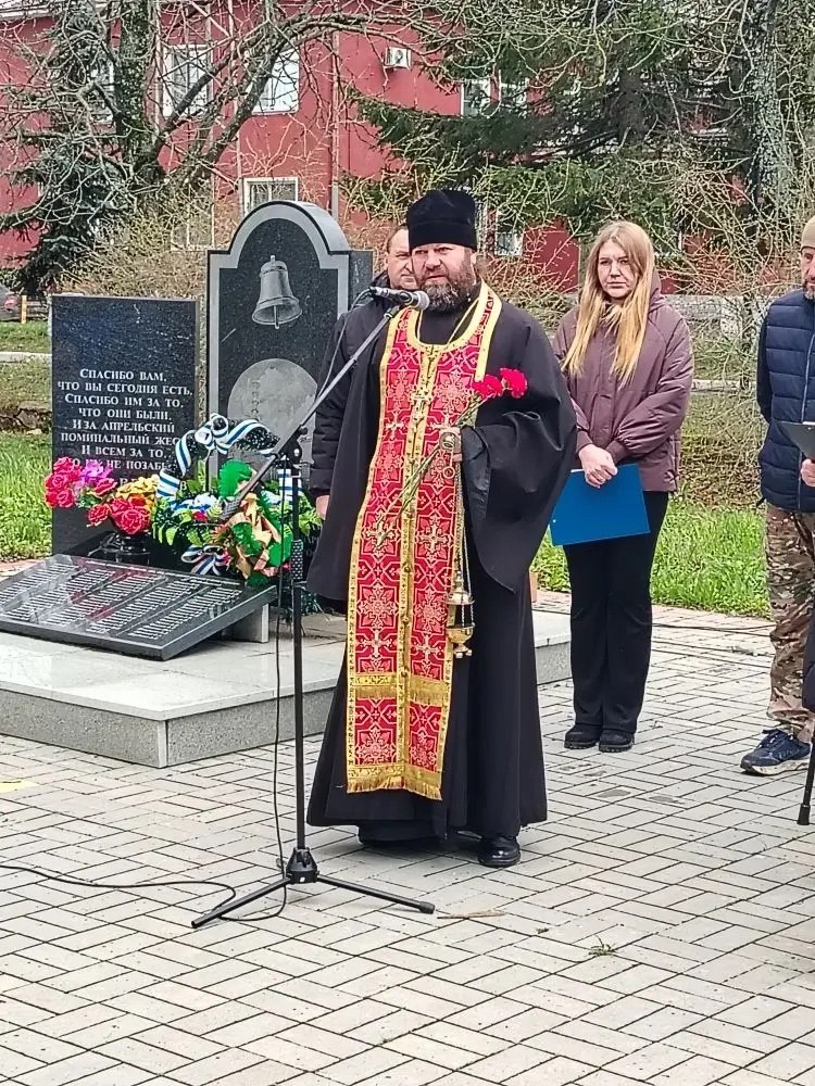 С приветствием выступил первый заместитель главы Администрации района Павел Вертиков и протоиерей отец Евгений Чумаченко. Батюшкой был прочитан заупокойный молебен.