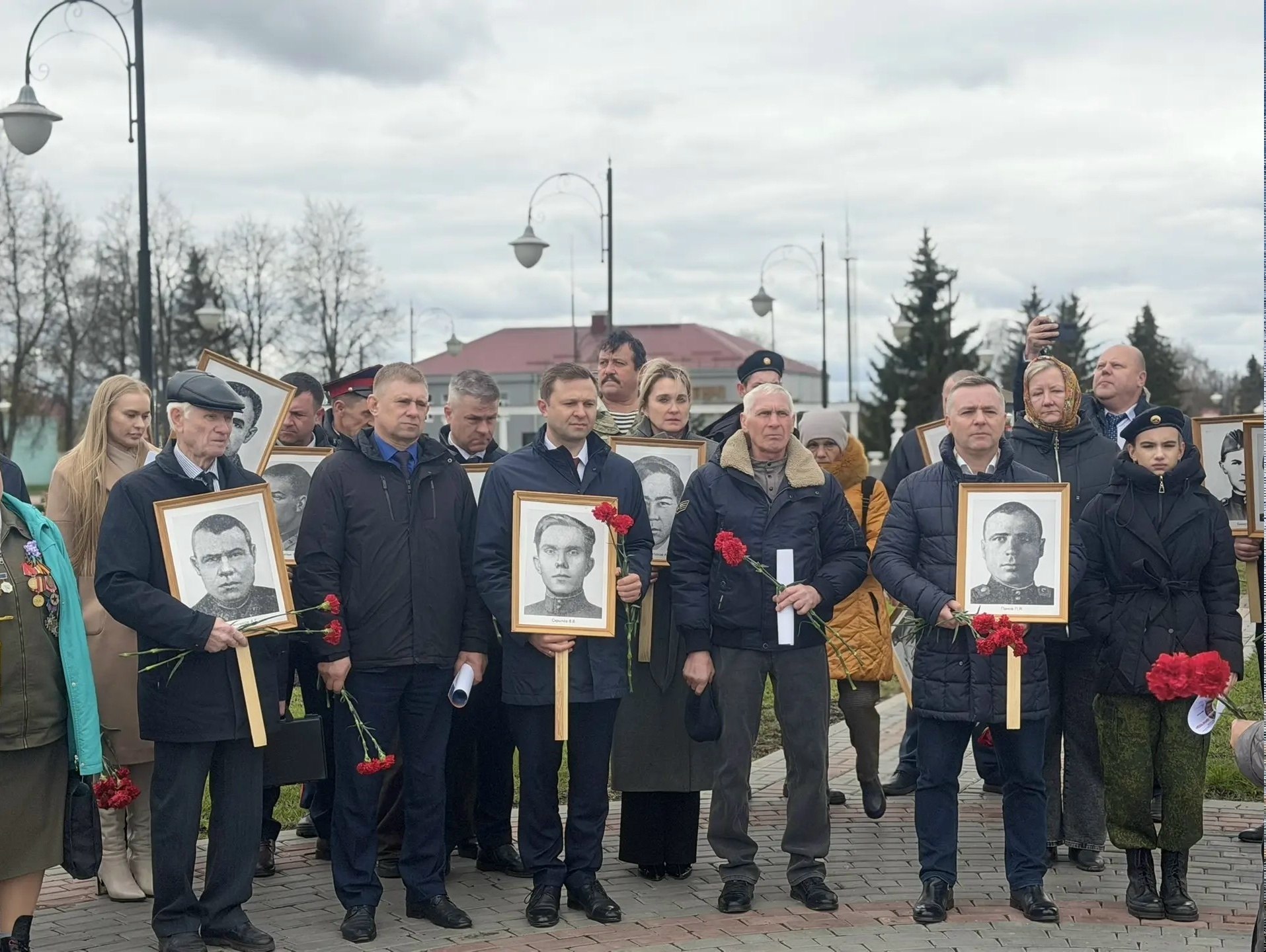 Завершив написание «Диктанта Победы», участники акции не разошлись — они взялись за портреты Героев, чьи подвиги в Курской битве стали частью великой истории страны. Колонна «Бессмертного полка», словно мост между прошлым и настоящим, двинулась к Вечному огню.