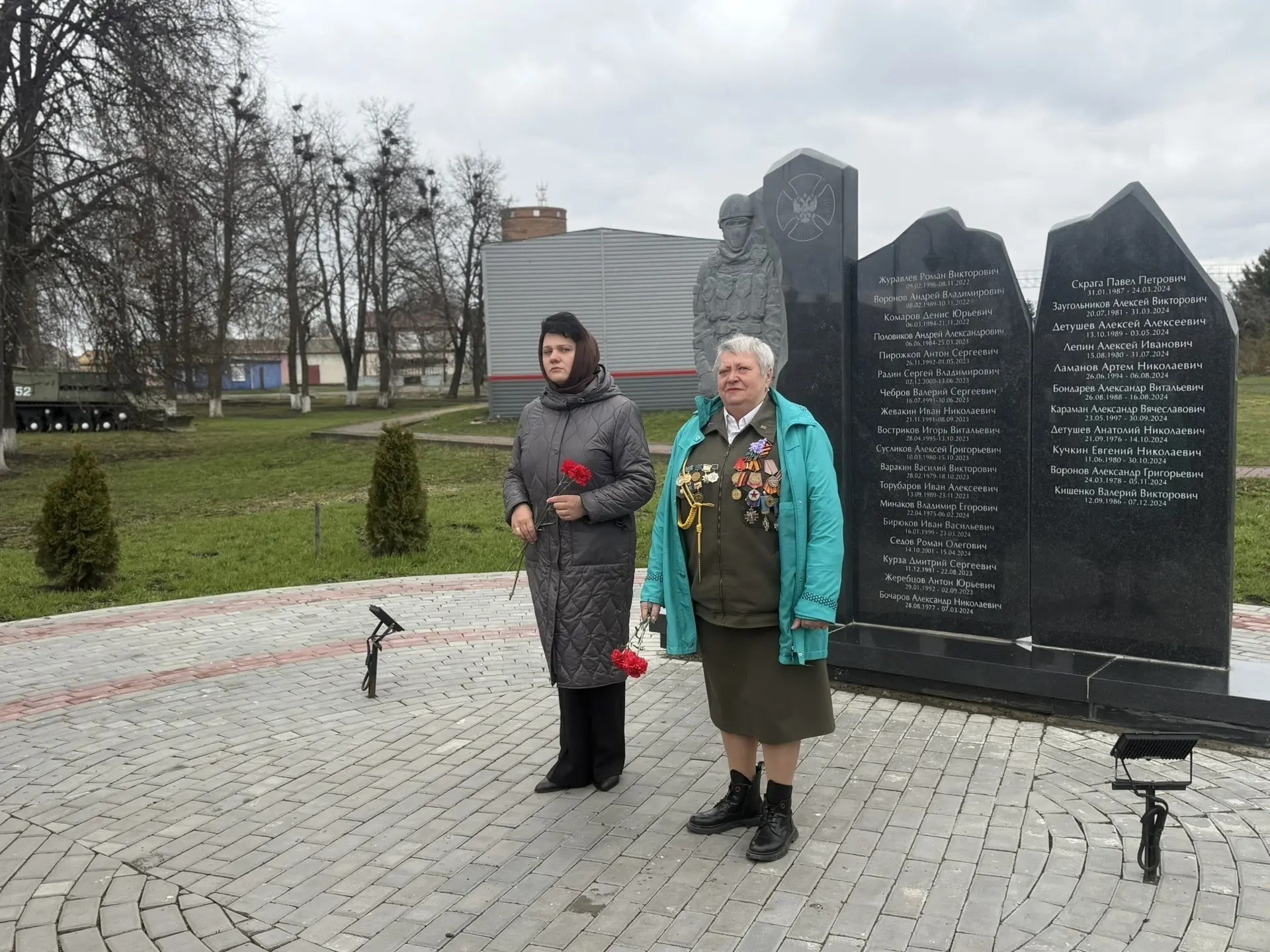 Путь продолжился у памятника землякам, погибшим в ходе специальной военной операции. Депутат Эдуард Дюмин, ветеран Татьяна Соколова и ветеран СВО Андрей Евгеньевич Переяслов говорили о преемственности подвига, о том, что имена Героев не стираются временем — они живут в памяти потомков.