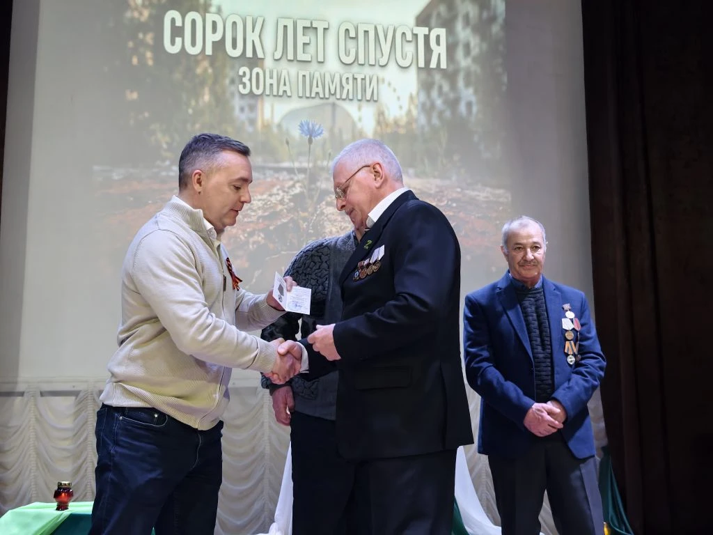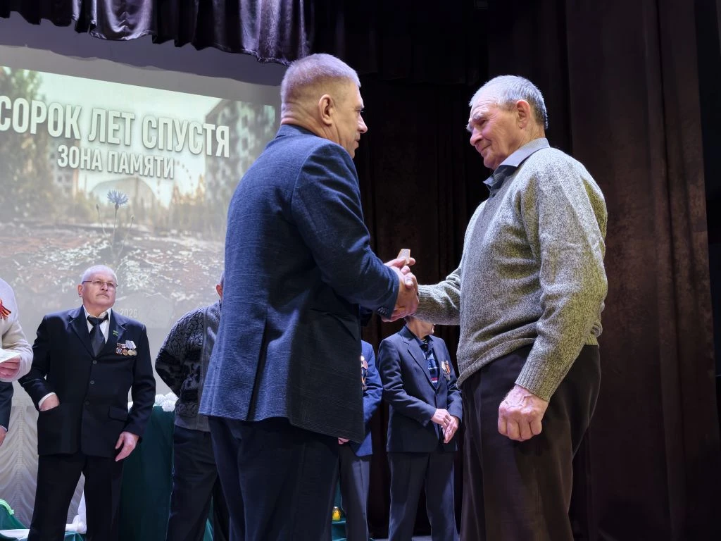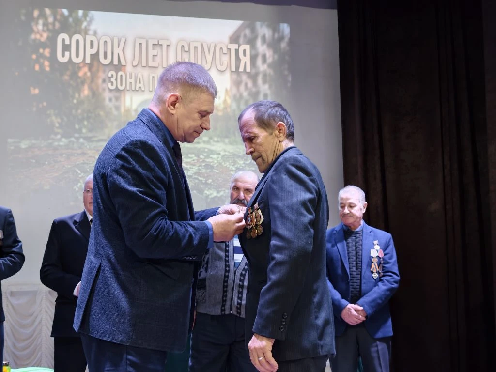 Сегодня в киноконцертном зале состоялось мероприятие, посвященное 40-летию аварии на Чернобыльской АЭС. Перед собравшимися выступили глава района Владимир Торубаров и депутат Курской областной Думы Эдуард Дюмин. Они также вручили медали «40 – лет аварии на Чернобыльской АЭС» ликвидаторам последствий аварии, проживающих в Поныровском районе.
