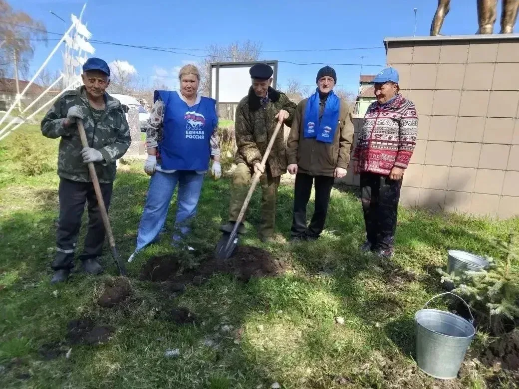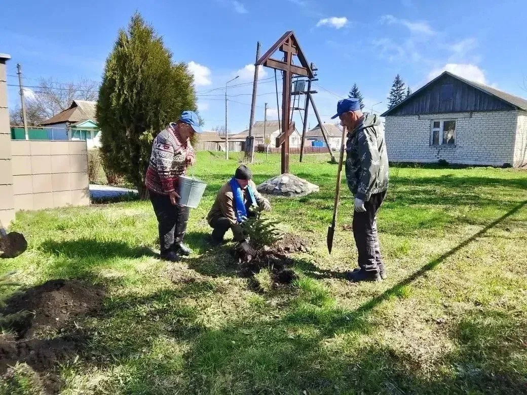 «Завершилась серия мероприятие высадкой голубых елей у памятника погибшим односельчанам в годы Великой Отечественной войны»,