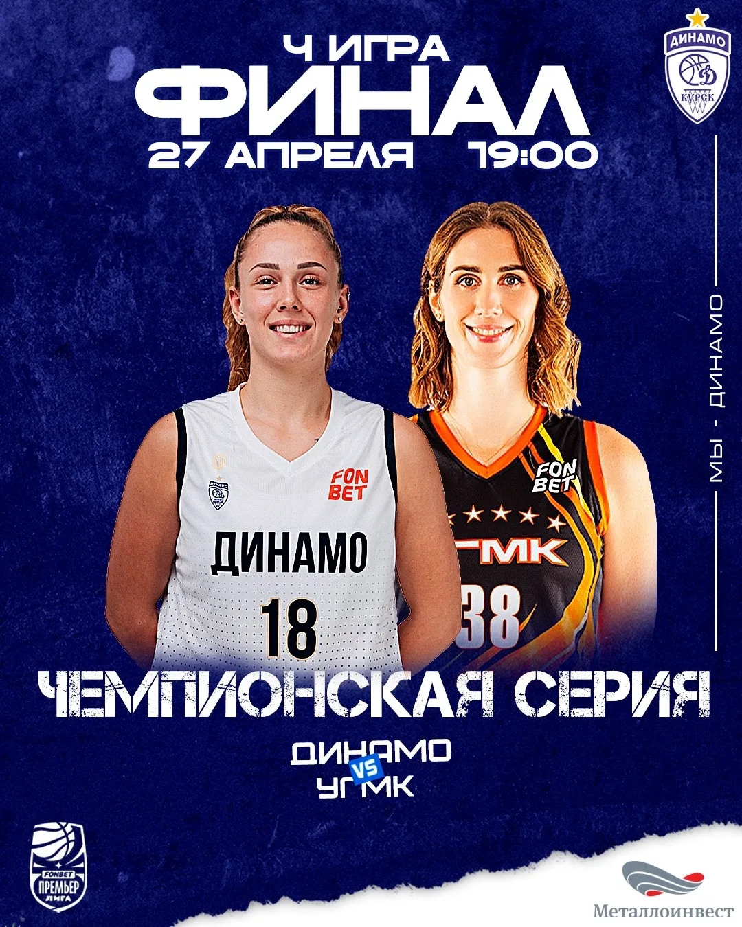 Вечером 27 апреля курское «Динамо» вновь схлестнется с УГМК из Екатеринбурга в чемпионской серии. Приходите поддержать курянок! #спорт46