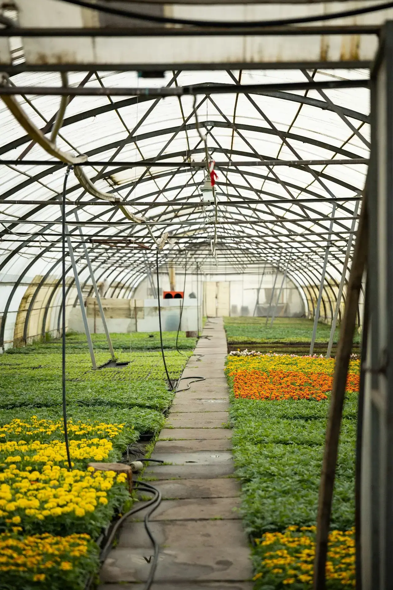 Рассада в теплицах готова, но массовая высадка однолетников в открытый грунт откладывается из-за аномально холодного и дождливого апреля.