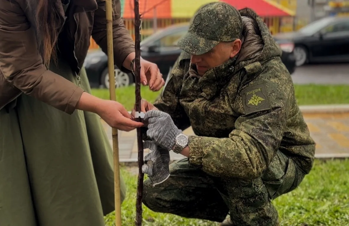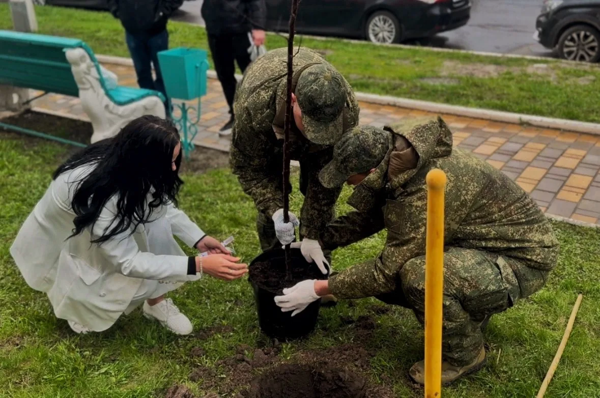 Вместе с жителями Суджанского района на проспекте им. Анатолия Дериглазова высадили декоративные яблони. На каждом саженце увековечено название населенных пунктов, где происходили исторические бои. Где наши воины боролись с неонацизмом.