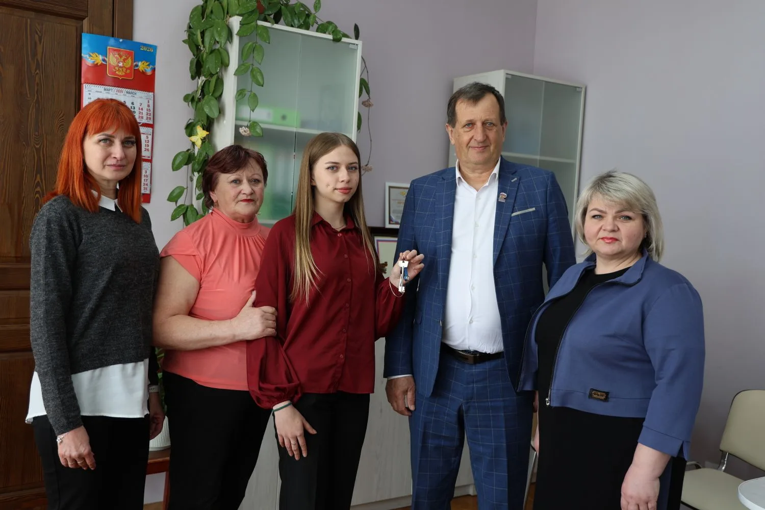 Поздравил Марию с этим замечательным событием и вручил ей ключи и подарок на память от районной Администрации.