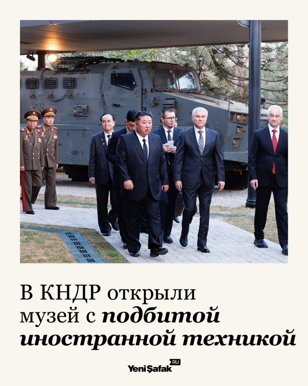 Лидер КНДР Ким Чен Ын показал министру обороны РФ Андрею Белоусову, который находится с визитом в Пхеньяне, зарубежную «трофейную» технику с фронтов СВО.