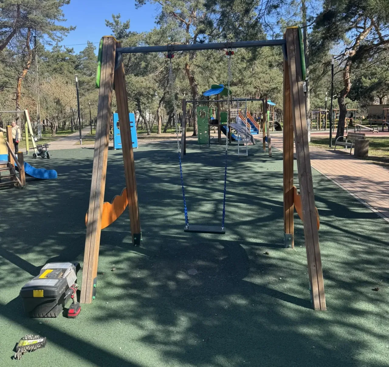 Кроме того, рабочие ремонтируют малые архитектурные формы. Ими выполнен ремонт качелей в "Спортивном" сквере и на озере "Ермошкино".