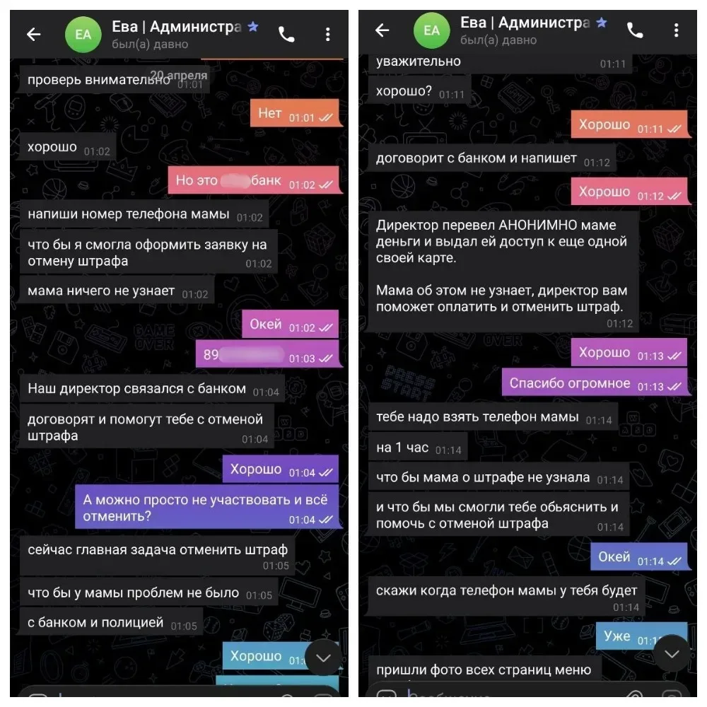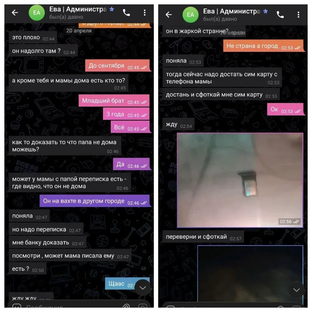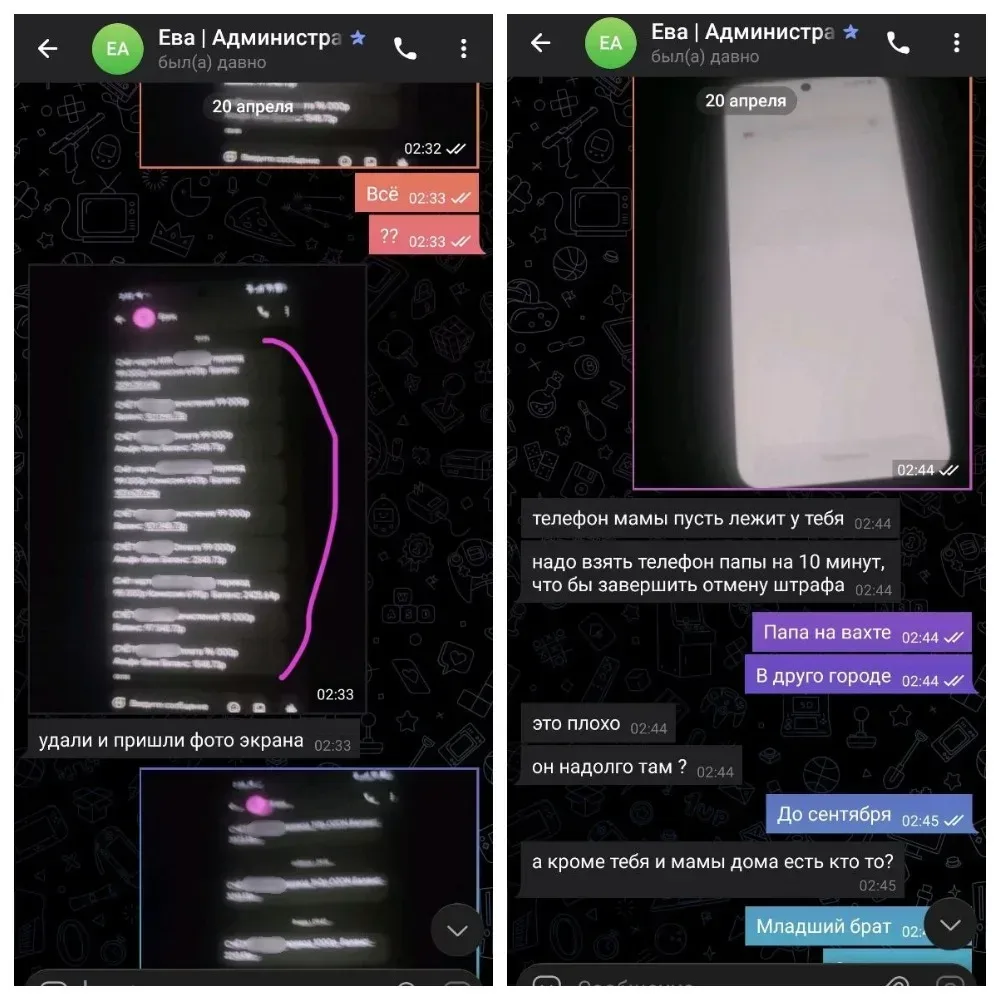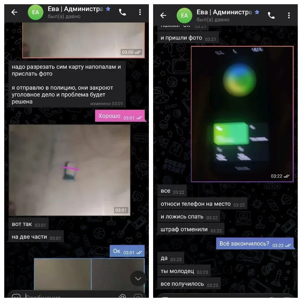 Ребенок получил доступ к телефону матери и под диктовку совершил несколько переводов на сторонние счета. После этого мошенники пытались скрыть следы — требовали удалить сообщения, отключить уведомления банка и даже физически уничтожить сим-карту.