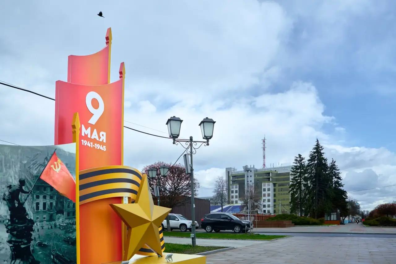 Тематические флаги уже установили на Красной площади, площади Героев Курской битвы и площади Дзержинского. Центральные улицы Курска украсили растяжками: «Курск — город воинской Славы!», «Курск ZA Победу!» и «80 Победа!».