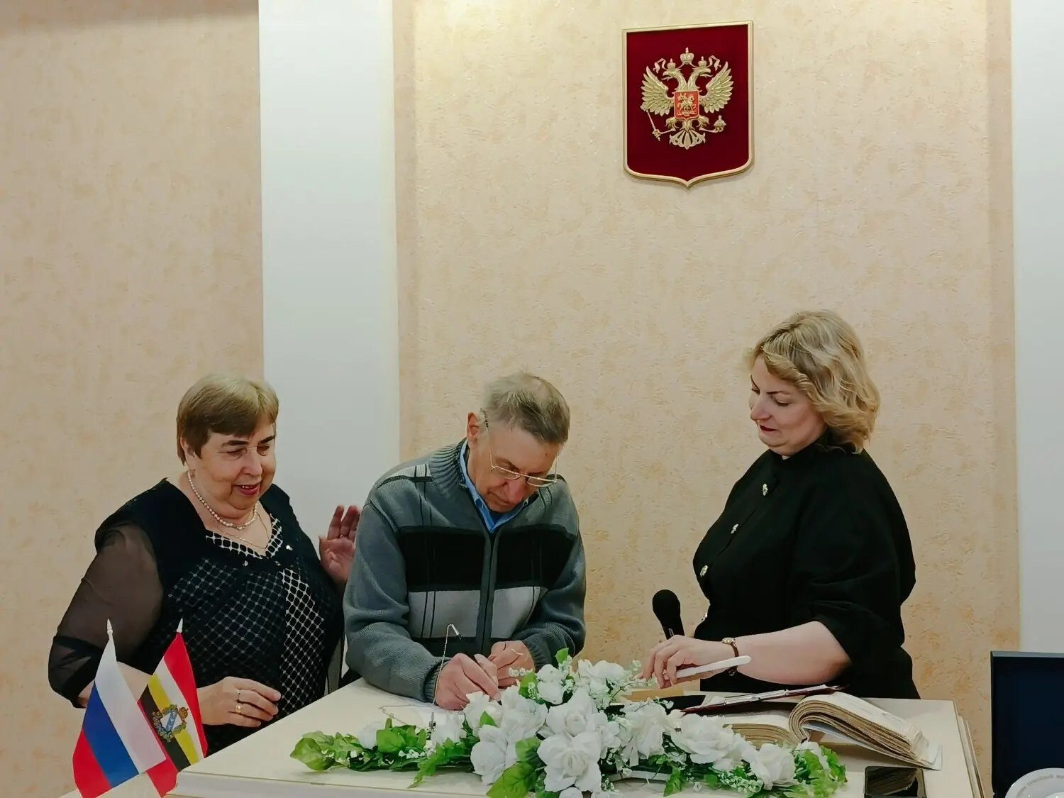 Владимир Алексеевич и Мария Григорьевна поставили свои подписи в Почётной книге «золотых» юбиляров супружеской жизни.