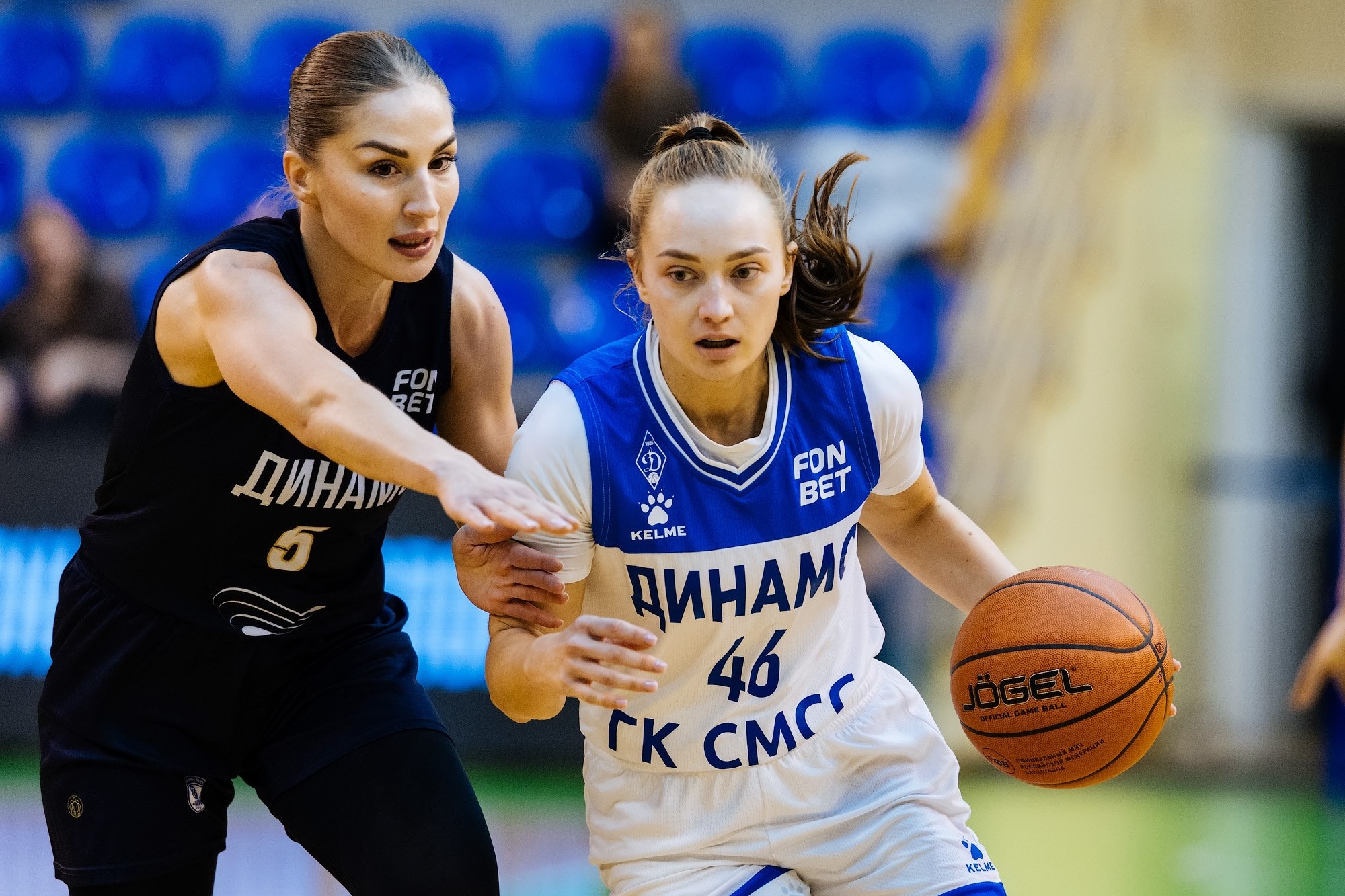 В Новосибирске курское «Динамо» провело первую игру 1/4 финала Кубка России против местных одноклубниц. Встреча завершилась уверенной победой курянок – 51:76 (11:20, 10:21, 9:17, 21:18).