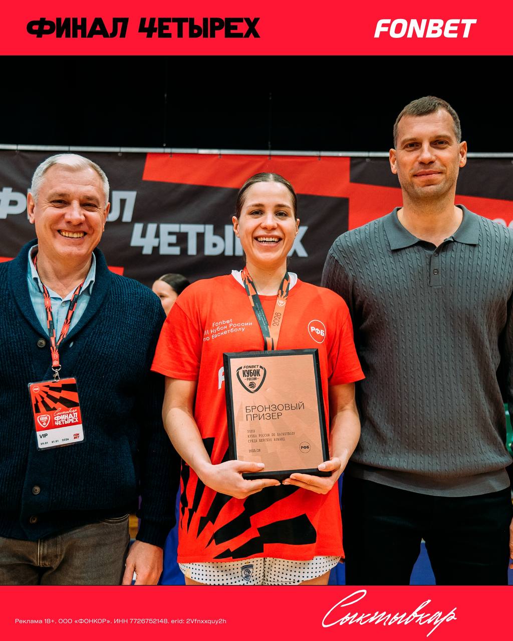 Курское «Динамо» в третий раз стало бронзовым призером Кубка России. Причем в прошлый это произошло тоже в Сыктывкаре: в конце декабря 2022 года курянки в поединке за 3-е место со счетом 88:56 разгромили хозяек.
