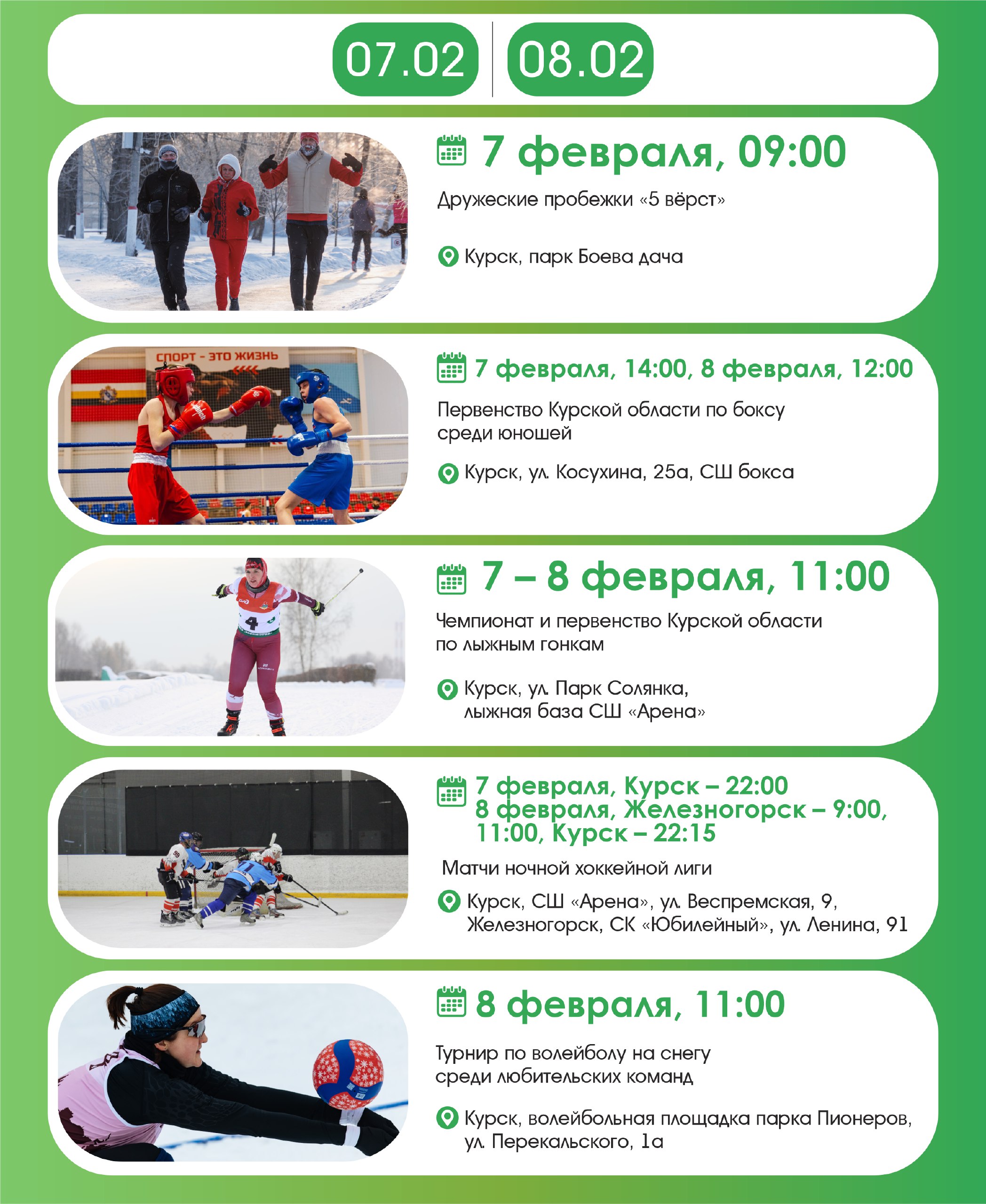 НАЧИНАЕМ ВЫХОДНЫЕ!. В нашем спортивном календаре соревнования по боксу, лыжным гонкам, хоккею, волейболу на снегу