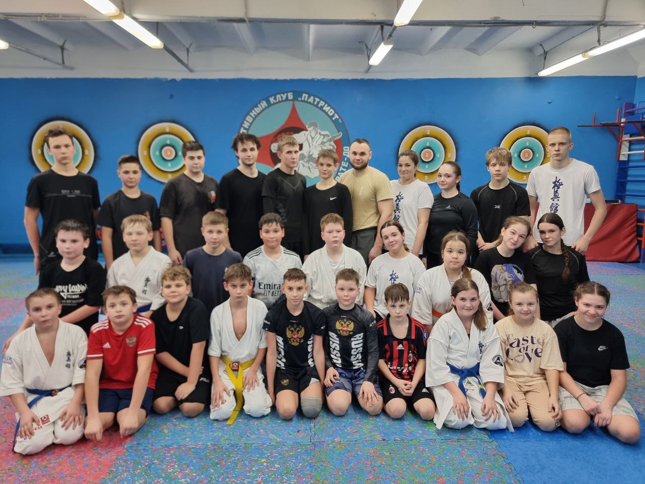 На фото участники Кубка Наций и юные каратисты на совместном спарринге.