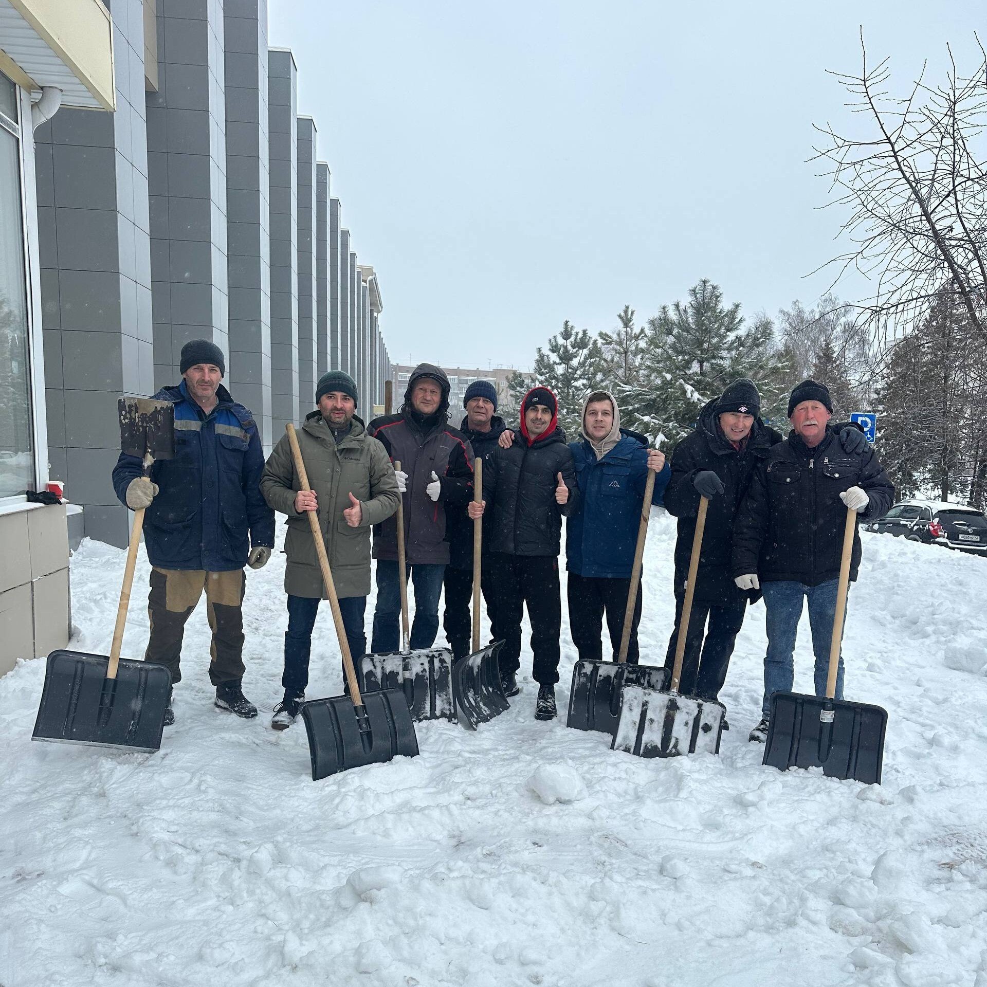 Наши коллеги - сотрудники Управления по организации и проведению спортивных мероприятий сегодня очищают от снега территорию главного стадиона региона «Трудовые резервы».
