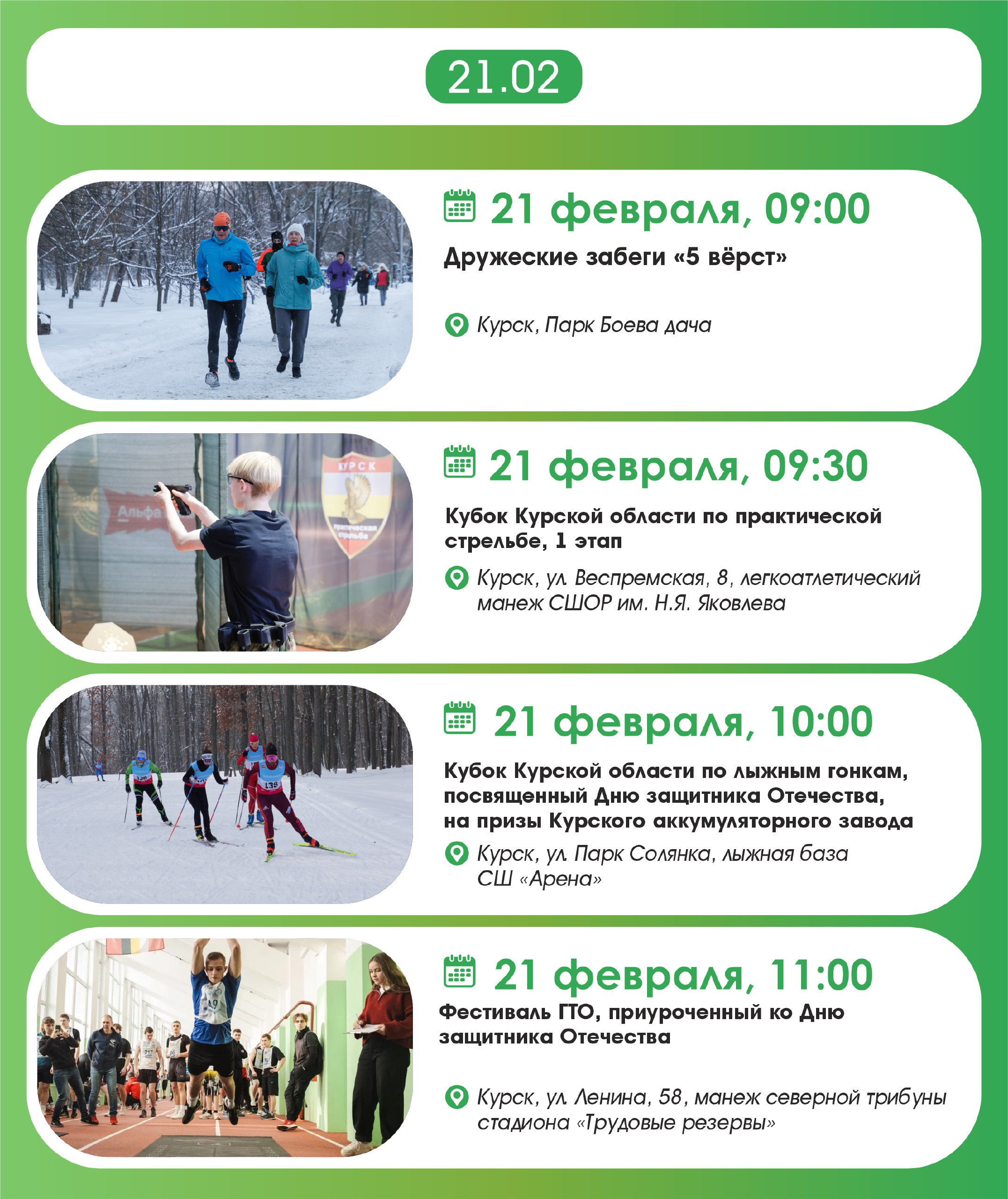 Нас ждут три дня активного отдыха, море мероприятий и яркие впечатления. Начнем с субботней пробежки, а завершим баскетбольным матчем женской Премьер-лиги - встречаются команды из топ-3.