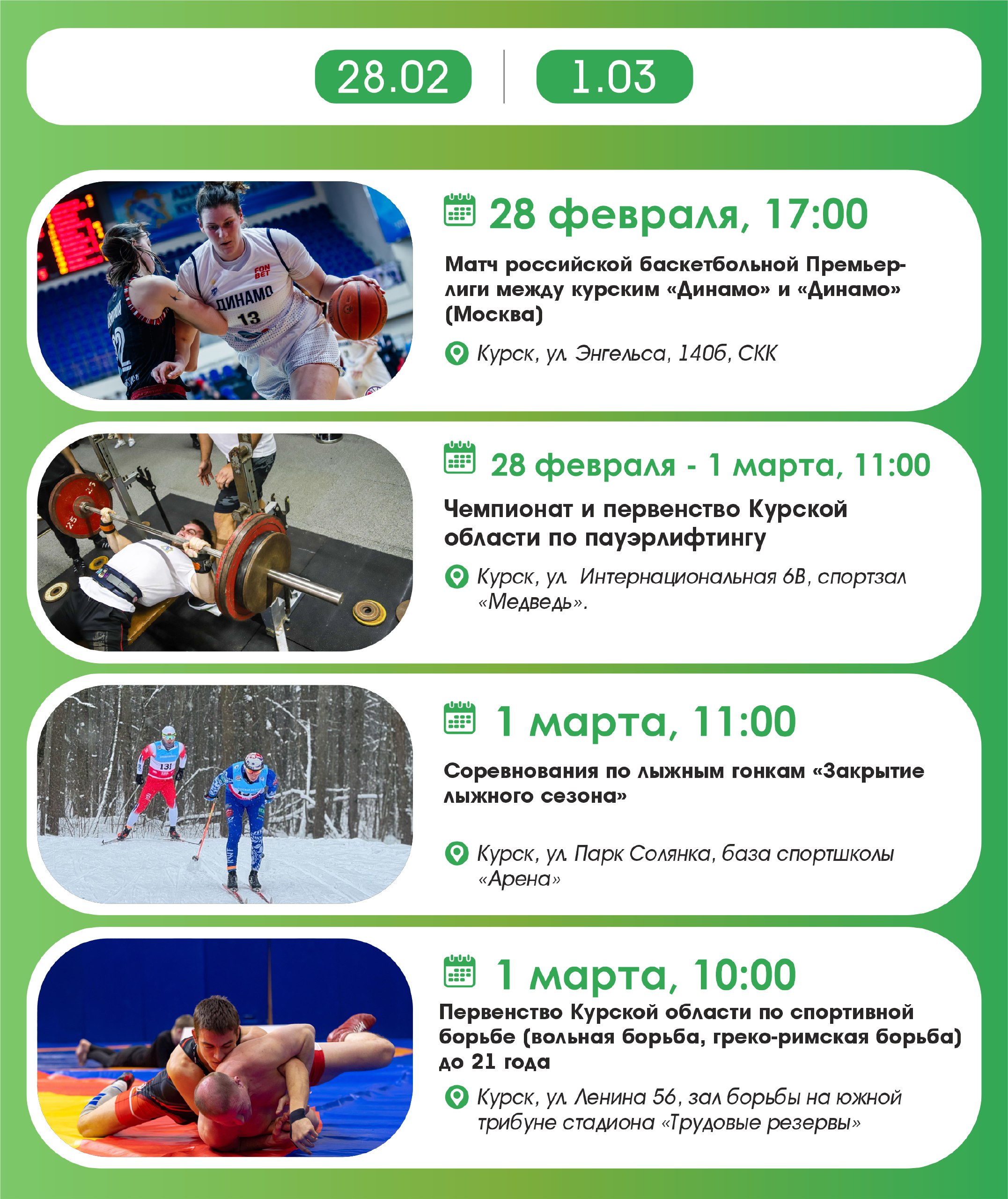 Впереди нас ждут два дня соревнований по самым разными видам спорта, в том числе закрытие лыжного сезона. Оно состоится в первый день весны! Изучаем нашу афишу.