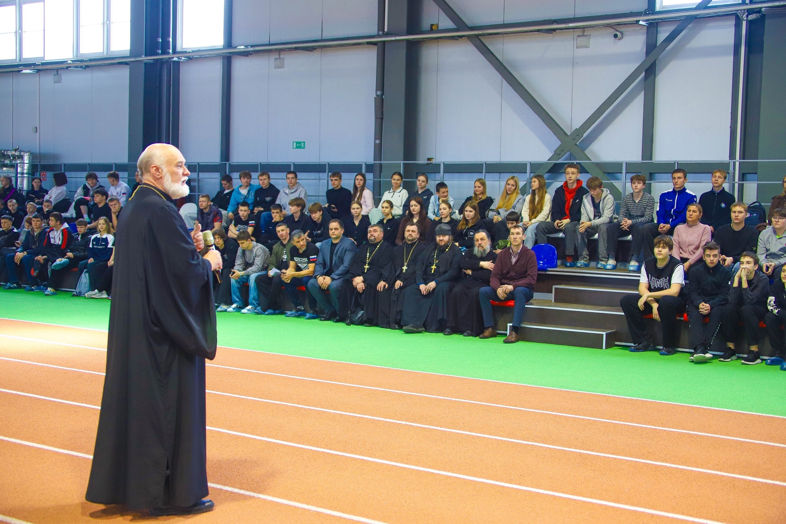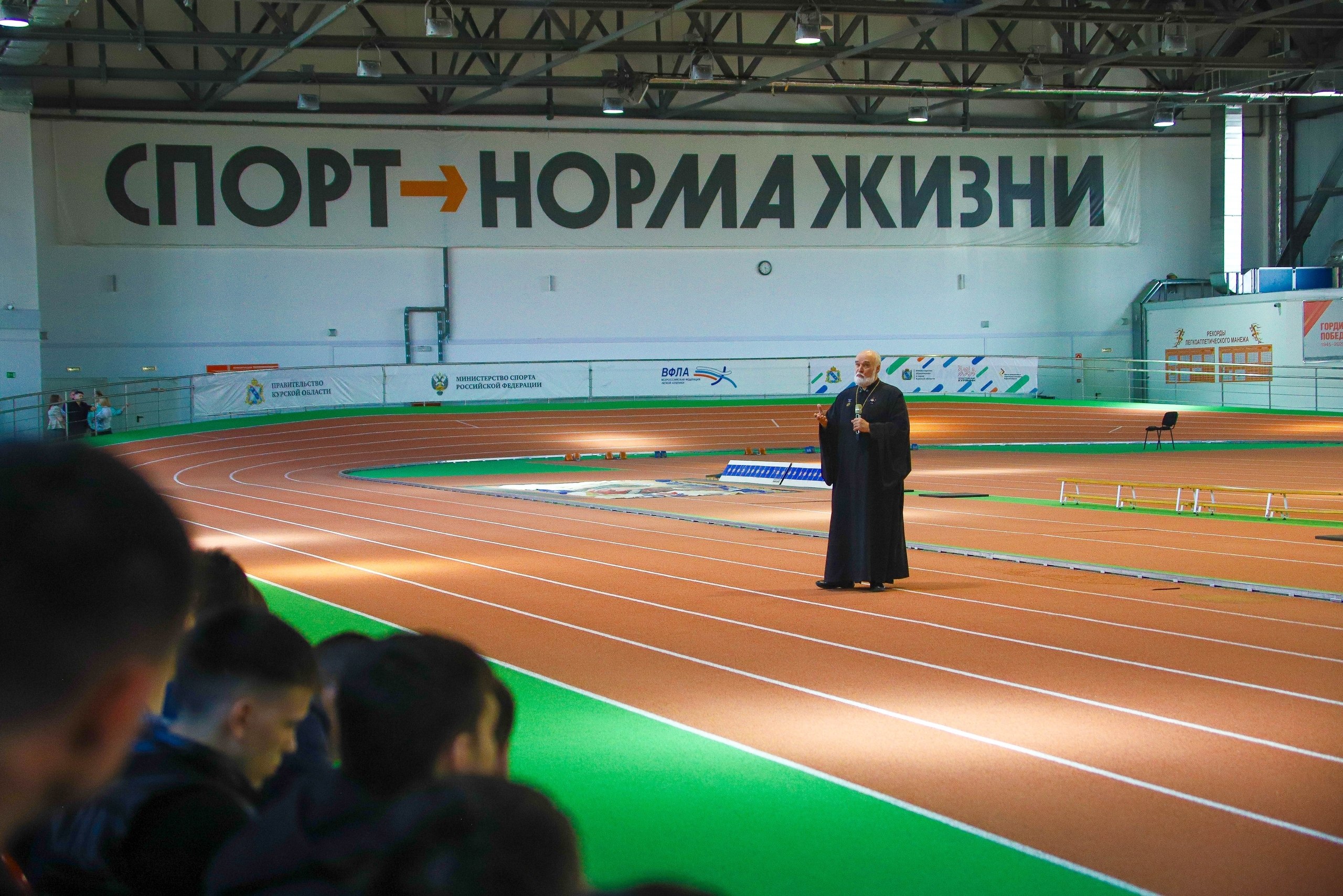 В легкоатлетическом манеже состоялся разговор о том, как избежать попадания в секты и обезопасить себя от их негативного влияния. Перед курскими спортсменами выступил известный российский церковный и общественный деятель, митрофорный протоиерей Александр Новопашин.
